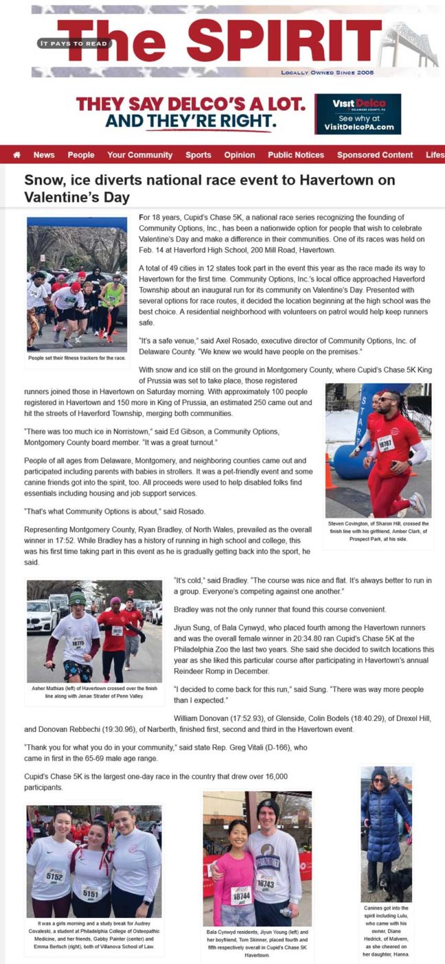For 18 years, Cupid’s Chase 5K, a national race series recognizing the founding of Community Options, Inc., has been a nationwide option for people that wish to celebrate Valentine’s Day and make a difference in their communities. One of its races was held on Feb. 14 at Haverford High School, 200 Mill Road, Havertown.