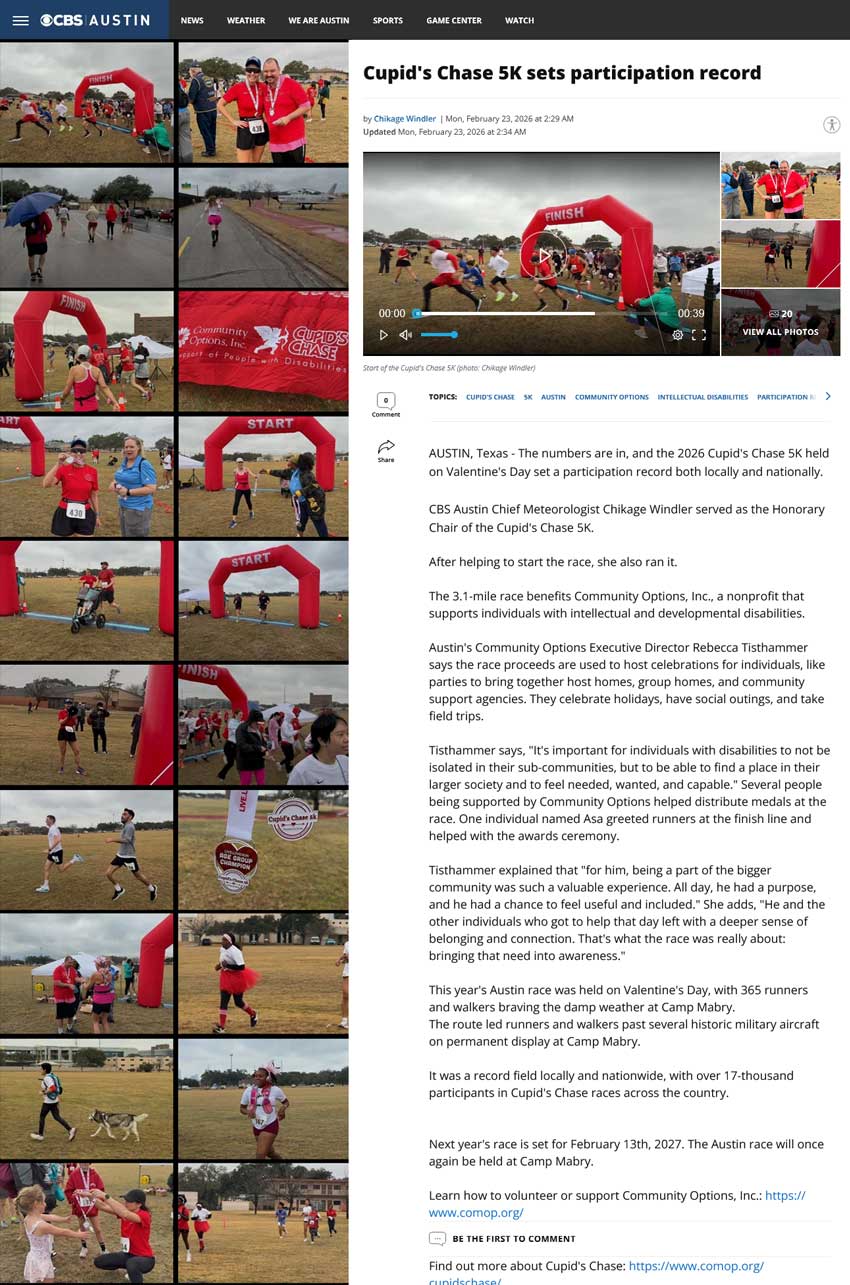 AUSTIN, Texas – The numbers are in, and the 2026 Cupid’s Chase 5K held on Valentine’s Day set a participation record both locally and nationally.