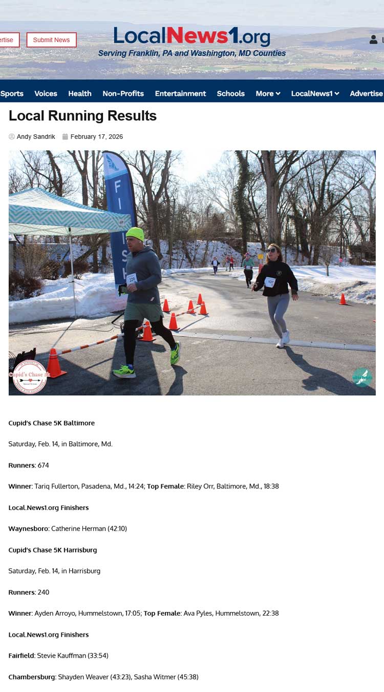 Local Running Results 2026 Cupid’s Chase 5K Baltimore and Harrisburg